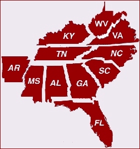 Georgia, Florida, Tennessee, Kentucky, South Carolina & North Carolina).