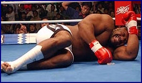 At 6' 7" tall and 374 lbs, very few thought Sapp could be put down but the big hype for K-1 was stopped BIG! At the K-1 show in Omiya at Saitama Super Arena, Mirko "Cro Cop" Filipovic had little trouble in defeating Sapp at 1 minute, 26 seconds of round 1 when he clocked Sapp in the eye and dropped him, breaking Sapp's eye socket. (See story "Minus One BEAST At K-1 USA... And a TANK!" By clicking HERE)