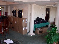 While the others are due to arrive Thursday and Friday, Johnny Davis arrived late last night by plane. Johnny of course was refreshed and ready to roll while I needed a little rest after unloading and carrying the 20 plus boxes to our IKF Radisson Office (Right & Below) filled with Championship Belts, IKF Souvenirs, T-Shirts, Gloves, Shin Pads, Computer Equipment and other event supplies. About 10 trips to the room later, our IKF Radisson Office quickly filled up.