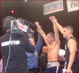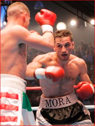 Regan had some good moments throughout the fight and landed nice clean shots to the head and body of Mora! Mora said after the fight "Regan hits hard, I felt his power!" This was evident in Mora's blacken eye. However, Regan's 6'4" frame and power proven in his 18 Ko's of 24 previous fights did not matter to Mora as he used his speed and movement to counter Regan's offensive skills!