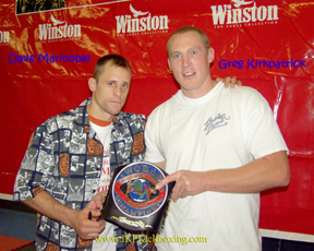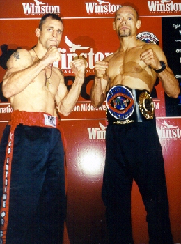 Dave Marinoble (Left) and Tommy Kimber (Right) Pose at the press conference before their IKF Middleweight World Title bout in Malaysia 2 weeks ago. The bout was Kimber's first defense of his title he won in May of 1999 by unanimous decision over Curtis Bush. Marinoble stopped Kimber in the 8th round to become the New IKF Pro Middleweight World Champion. A full story is ready to go on this event but we've been waiting for the fight puictures from Malaysia. Sorry for the delay... Watch for all the details very