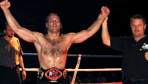 ROUND 3 ROUND 4 Dixon's belt was presented by special guest Frank Shamrock (Right). The win gave "BIG John" the IKF Pro Super Heavyweight MuayThai Title and brought some attention for him as being a potential contender for the K-1 North American Tournament. Question is, is there an opening for him? Well, there just so happens to be one we know of... From what we found out last Thursday, a day before this bout, Collyer had pulled out of the K-1 North America Qualifier event in Milwaukee Wisconsin in February of 2002. If there's still an opening where Collyer's name once was, we'd like to suggest Dixon be the one to fill it. Under the circumstances, it would only seem fair. As far as Collyer, he already had plans to stay in the Heavyweight Division (Under 215 lbs.) which is where we feel he's the strongest. Once again, nearly every title in the heavyweight division is vacant and Collyer's proved he's a contender in any of the rules styles at that weight. We're sure to see Collyer back again in the heavyweight division after his foot heels and if Dixon can't get his shot in the K-1 North American Tournament, there's always the chance of him going to England to face Matt Skelton in March for Skelton's IKF MTR World Title. Here's a review of all the nights bouts.
