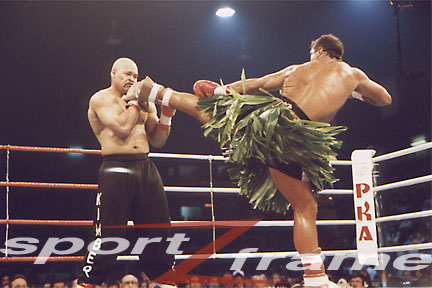 obviously gave way. The bout was sanctioned by the ISKA and the WKA. The ISKA