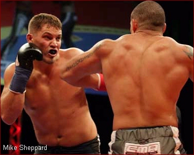 Scotland by head kick KO at 2:04 of round 2 in St. Helens, England on August