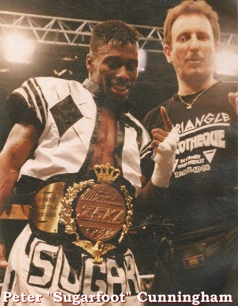 Peter "Sugarfoot" Cunningham is a retired Canadian kickboxer and martial arts actor. Peter, like many others, wanted to train in the martial arts after watching Bruce Lee movies. His professional kickboxing career spanned 18 years, where he became a 7-time World Champion, and in 1998 became the first inductee into the ISKA Hall of Fame. Cunningham got the nickname "Sugarfoot" because of his extremely fast and technical kicking abilities. He also incorporated boxing hand techniques, defense and footwork into his style, and held a 10-4 record as a professional in that sport.