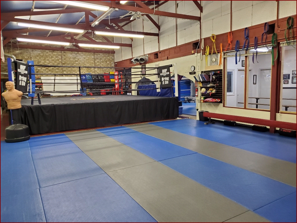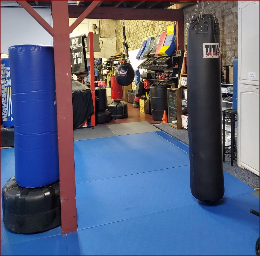 A 20 x 20 Professional Boxing Ring sits at one end of the room for light to full contact sparring.