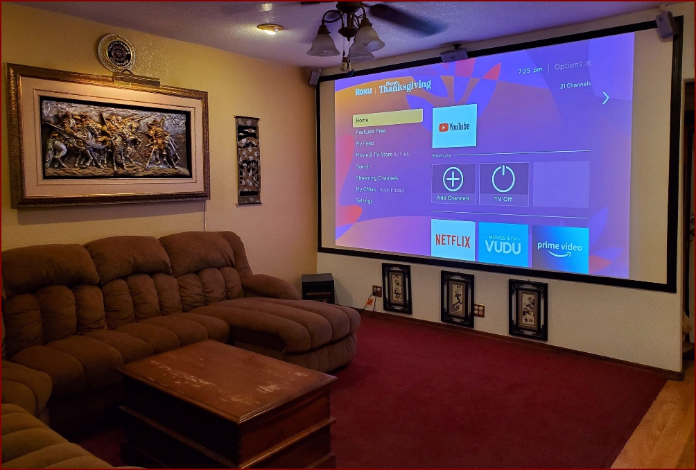 With a "150" inch Projection Screen with 5.1 surround sound this media room is like being at the movies.