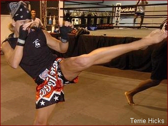 Terri Hicks was born July 25, 1965 and passed away this past Saturday, November 5, 2006. What's important to all of us is not the day she died or how, but the 41 years of her life she lived among us all. As a fighter, Hick's ability to stand "Toe to Toe" while going for any of her Multiple Titles in the sport of Kickboxing was no different than how she took on every challenge in her life... Head on with 100% commitment.